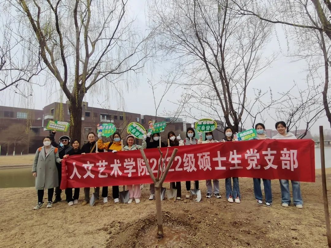 “杨柳抽芽始于人,万物萌发源于春。”时值全国第45个植树月,为深入学习贯彻习近平生态文明思想,人文艺术学院2022级硕士生党支部积极报名、踊跃参与学校“花堤蔼蔼”植树活动。