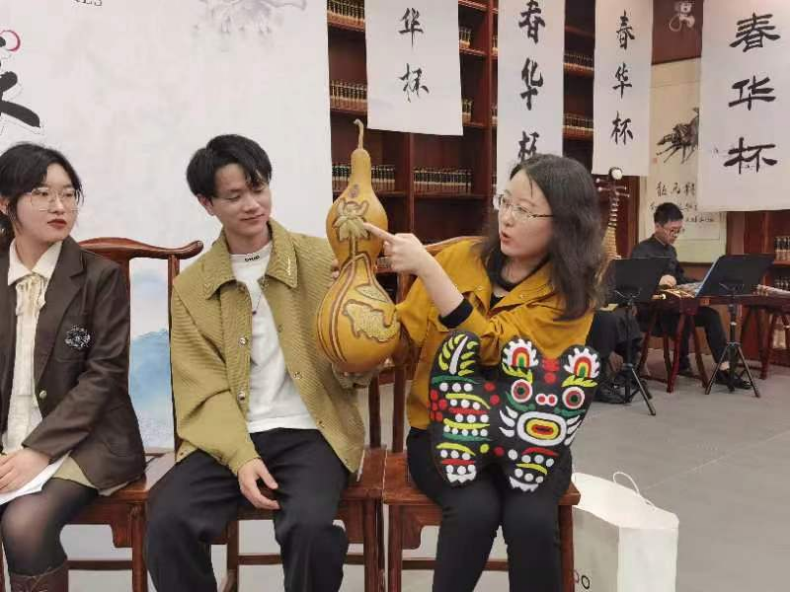 建筑学院博士生刘垚瑶难捺自己激动的心情,在访谈现场向在场的老师同学们展示了葫芦雕和布老虎两个非物质文化遗产代表作。她在访谈中说,此次获奖的作品是一篇关于非物质文化遗产与原始艺术的研究的学术论文。原始艺术源自于生活,非物质文化遗产同样来源于生活,承载着原始艺术,原始艺术又借由非遗进行表达。例如在学校图书馆展出过的民间布老虎、葫芦以及面塑作品都来自于非物质文化遗产传承人之手,都是原始艺术在当下的延续。
