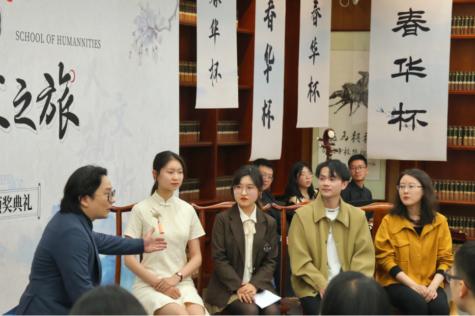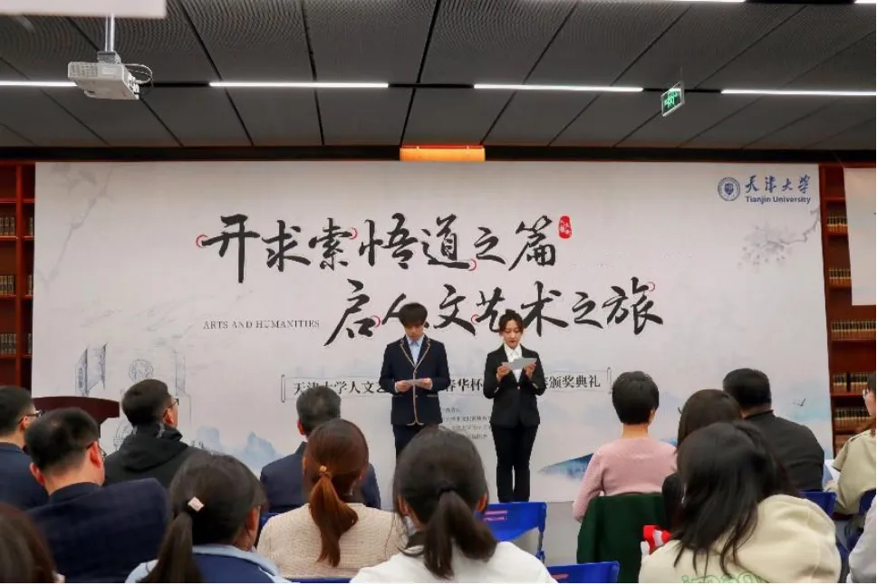 2023年5月5日下午,天津大学第21届“春华杯”征文大赛颁奖典礼举办。多年来,春华杯征文大赛一直受到校内师生的广泛关注和参与,参赛作品数量和质量逐年攀升。本届颁奖典礼尝试在多角度进行创新,以进一步提升同学们积极参与文学创作的热情,营造校内浓郁的人文氛围。在深入学习贯彻习近平新时代中国特色社会主义思想主题教育的背景下,人文艺术学院党委将此次“春华杯”颁奖典礼作为主题教育的一次生动实践,展现青年学生在文化创作中的志气、底气和骨气。