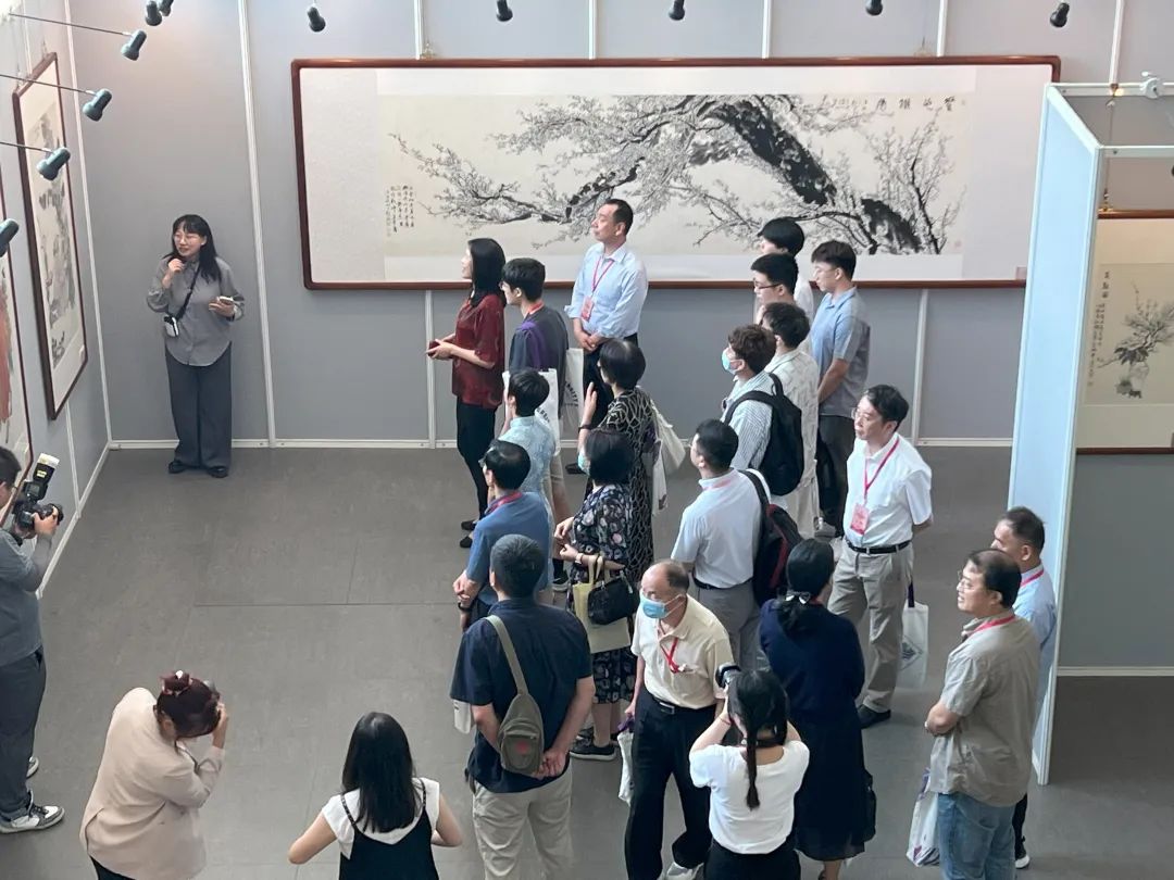 王学仲艺术研究所所长孙列老师为本次展览创作主题作品《素心铁骨》,将“白梅”作为表现意象,以如椽大笔写意方式,塑造出梅花虬劲枝干、怒放花朵及斗寒傲霜姿态。在中国传统文化之中,梅与松、竹并称“岁寒三友”,既代表着铮铮铁骨、自强不息,又被视作无意争春的谦谦君子。这种以物喻人、托物言志手法的运用,真实反映了以刘豹先生为代表的天大“大先生”,攻坚克难、筚路蓝缕开创事业,治学严谨、求索不息攀登科研高峰的学者风骨和大师风范。同时,孙列老师还有中国传统高士、仕女题材作品《曦明品经图》《阮籍诗意图》《高山流水觅知音》等,格调高雅,文气浓郁,反映了中国知识分子不断追求抱朴求真,将文气、真气、骨气、逸气融于一身,“寄高洁之志、存浩然之气”的人生境界。