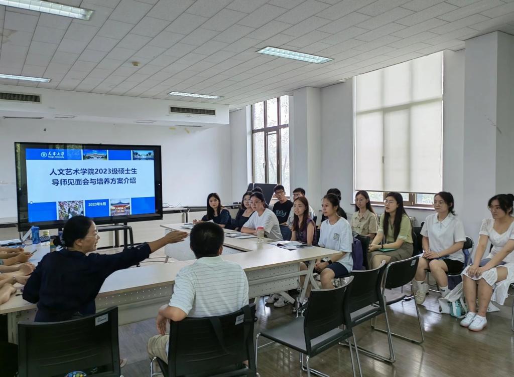 为促进师生交流,帮助新生尽快了解专业培养方案,2023年9月6日下午,人文艺术学院于第九教学楼404会议室举办研究生导师见面会暨培养方案介绍活动。中文系硕士生导师王用源、岳静、张黎明、万晓高、何慧俐、祝昇慧、魏静、王宇枫、史静与全体2023级研究生新生齐聚一堂,共探未来发展之路。