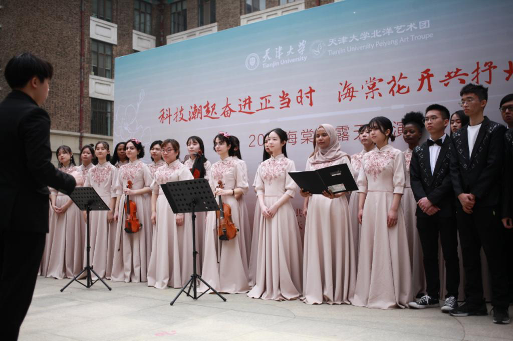 面向世界,深化国际合作,传播中国好声音。发挥天大艺术教育优势,加强文明互鉴,用音乐传播中国诗词,将《三十辐》《菩萨蛮》《陌上桑》等诗词创作成合唱作品,由“世界合唱团”北洋合唱团唱响到全世界。建设好孔子学院,举办海外华文教师研习班、教育部中外语言交流合作中心“汉语桥”线上团组项目。推进与“一带一路”沿线国家重点合作,深化与欧美教育科研机构合作,开拓与拉美、非洲相关国家合作渠道。