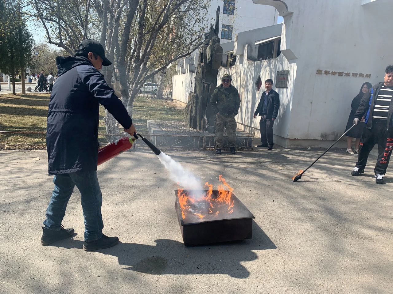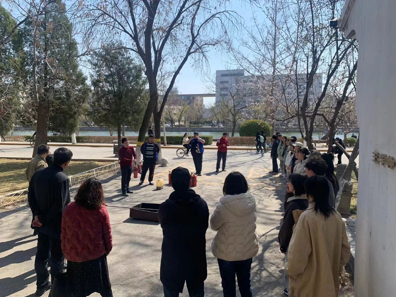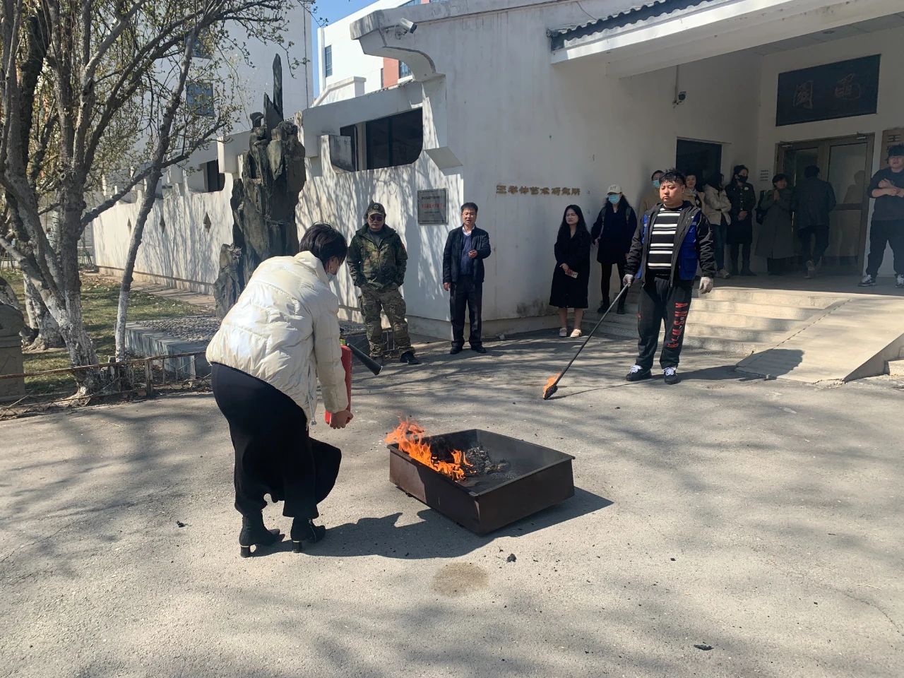 为加强校园安全管理,提升师生消防安全意识,提高应变、自救和防范能力,3月22日下午,人文艺术学院组织开展消防知识学习和灭火器材实操演练活动。校保卫处负责老师受邀为师生做培训,学院教师和学生代表参加演练。保卫处防火科老师丁薏桥为师生讲解了常用灭火设备的种类、工作原理、存放要求和使用方法,并现场演示操作要领,指导师生进行灭火技能练习。师生们按照讲解方法,踊跃参与,完成灭火实操演练。