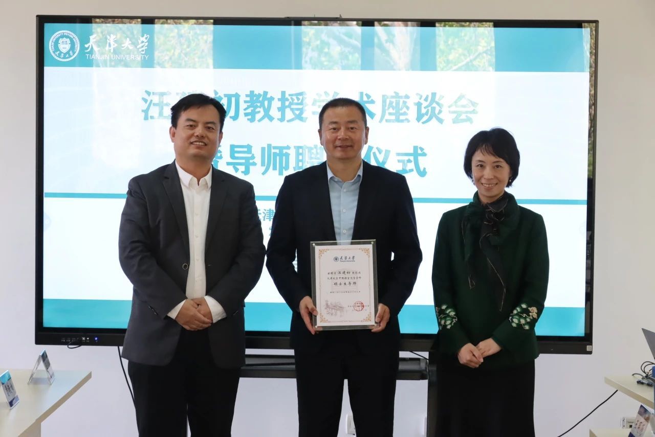 刘庆岭向汪建初颁发聘书,对汪建初的到来表示欢迎与感谢,并对其在天津大学未来的工作进行了展望。