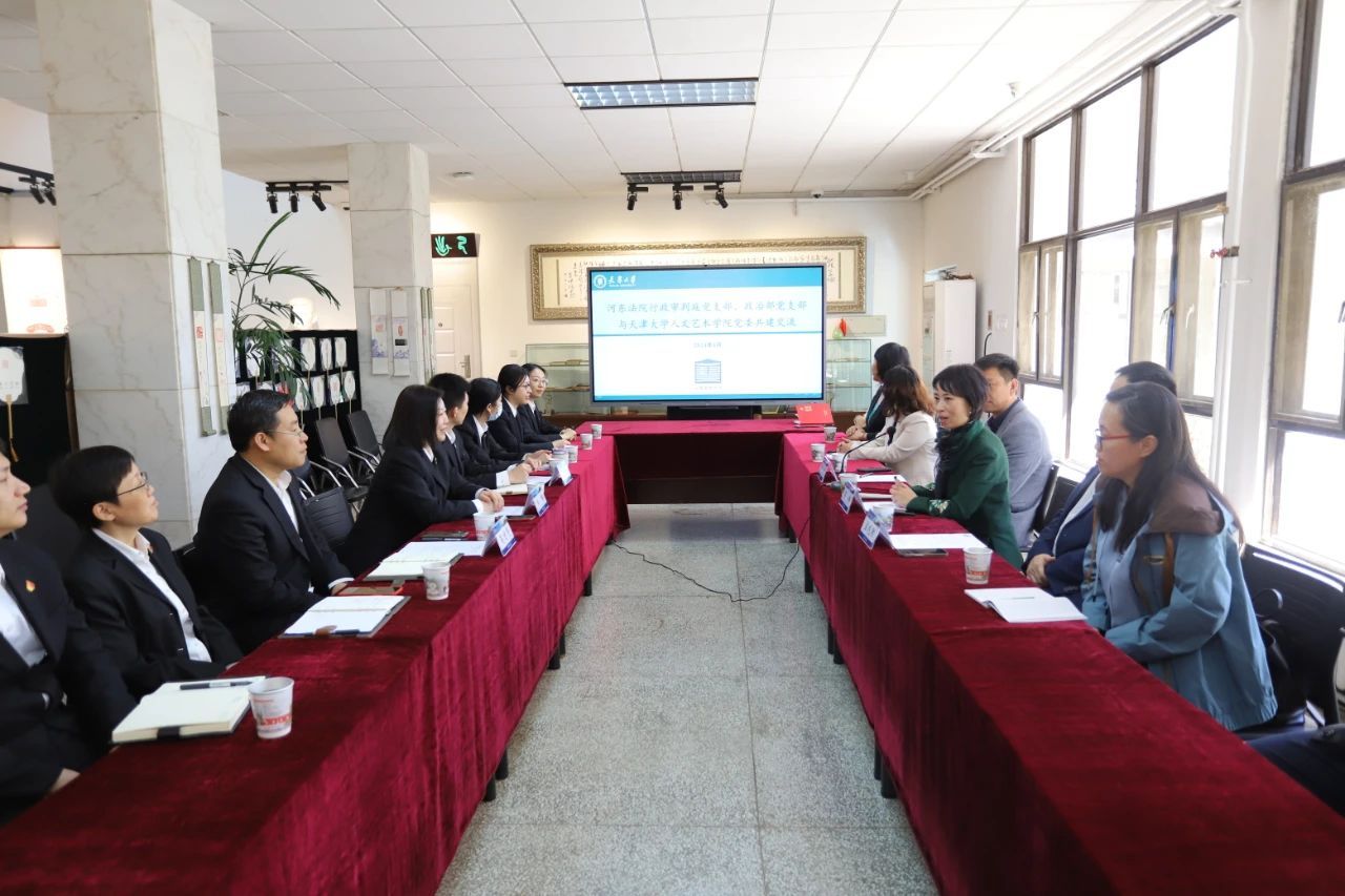 4月16日下午,天津市河东区人民法院党组书记、院长白榕一行来访人文艺术学院,开展主题交流暨联学共建活动,人文艺术学院党委书记吕静、副院长孟兆熙及双方党员代表参加活动。