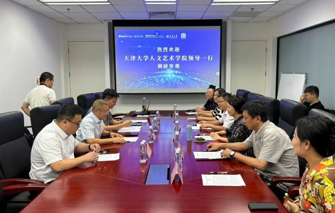 为持续推进访企拓岗,深化校企协同育人合作,7月4日,人文艺术学院党委书记吕静带队赴北京蓝色光标集团走访调研。学院党委副书记、副院长王用源,院长助理、王学仲艺术研究所所长孙列及教师代表参加调研。蓝色光标集团副总裁、北京蓝色光标未来科技有限公司总裁张秀斌,北京蓝色光标未来科技有限公司常务副总裁、天津中心执行主任杨维新等相关负责人参加座谈。