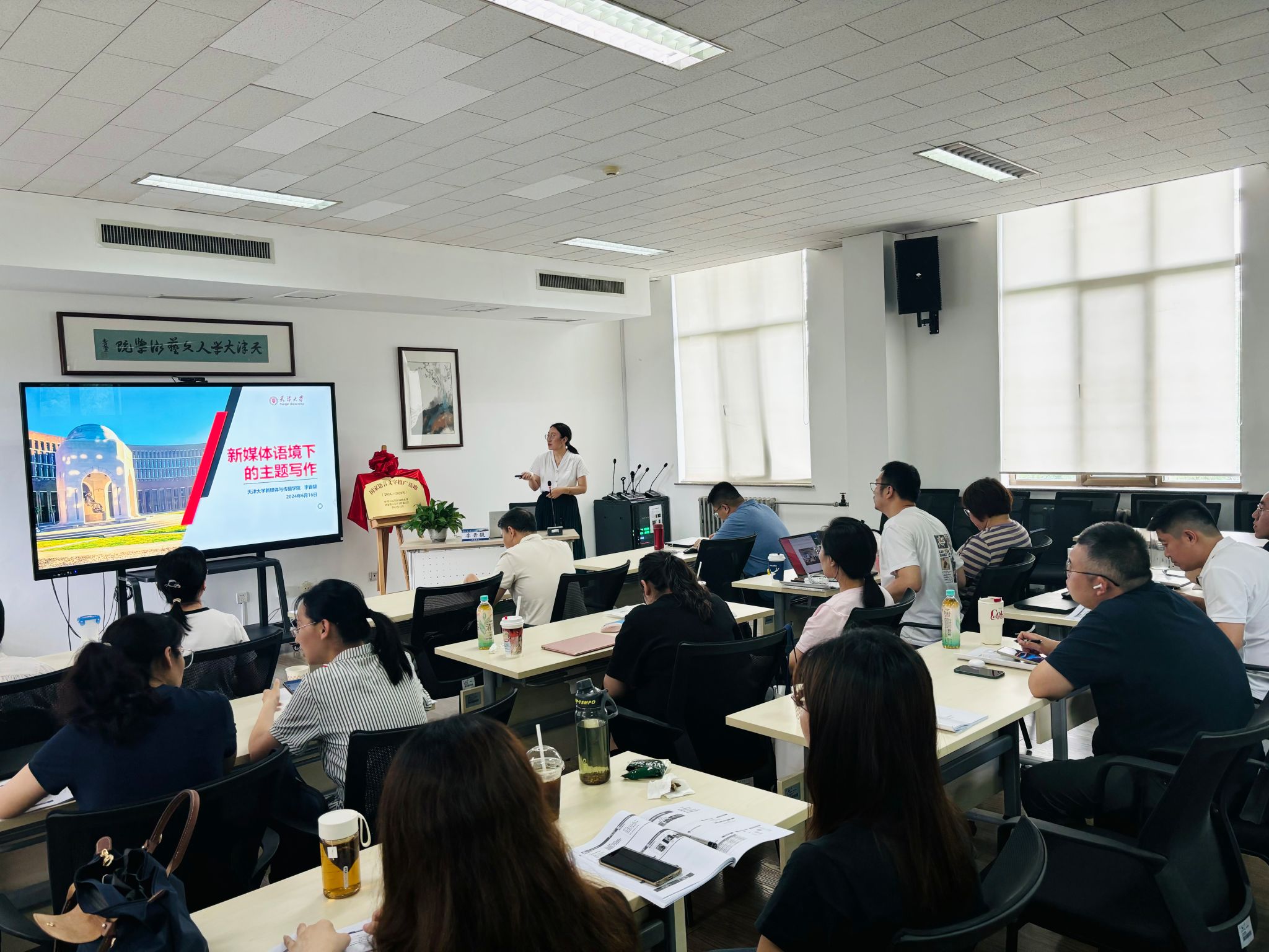 6月15日,由人文艺术学院主办的首期“文职人员综合能力提升培训班”开班。培训班旨在提升办公室文职人员的应用文写作能力、新媒体新闻写作与运营管理能力、办公室行政管理能力以及团队沟通与执行力。培训班采取小班授课模式,首期招生20人。来自企业、高校的行政管理人员参加了培训。