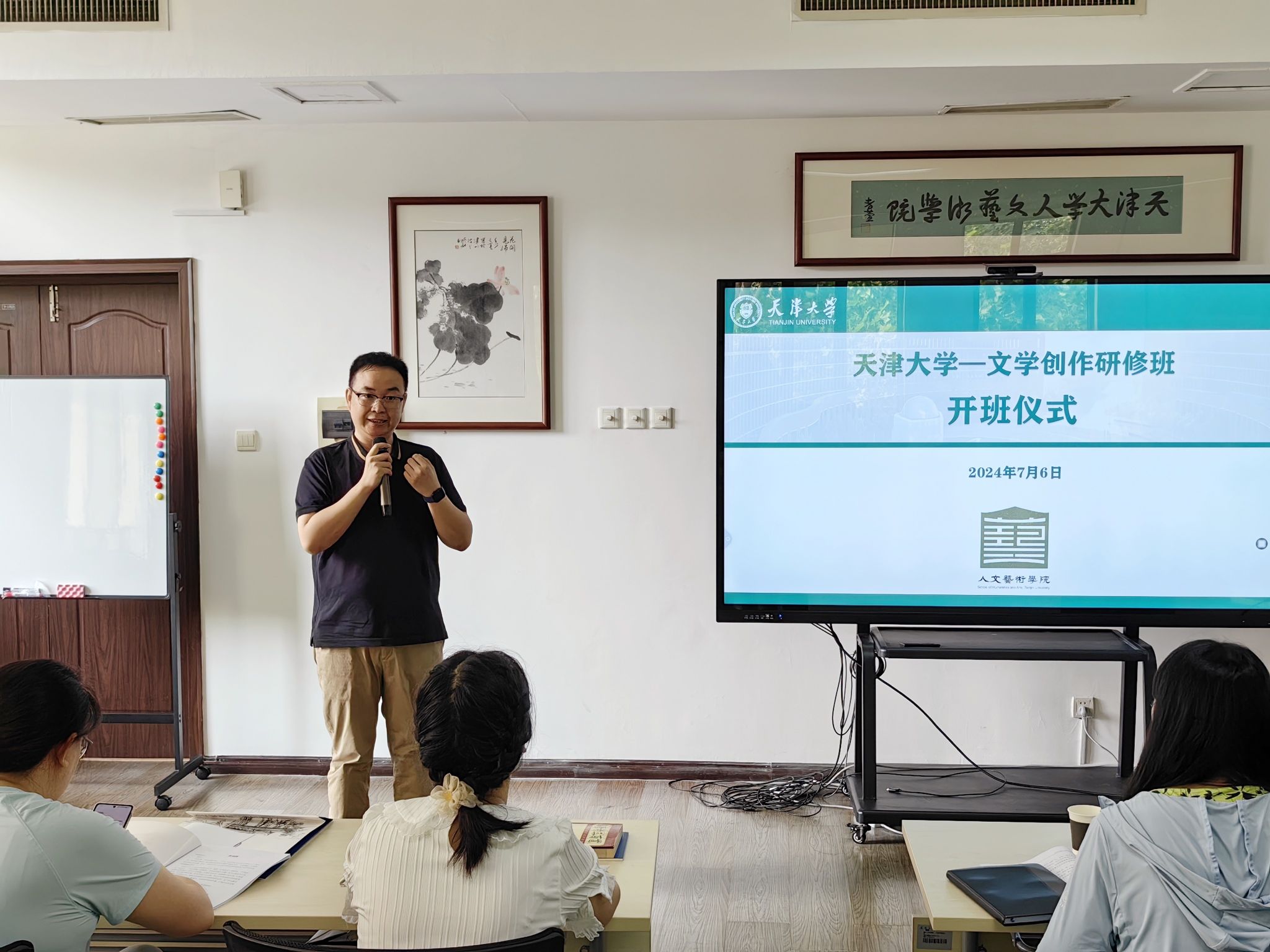 开班仪式上,人文艺术学院副院长孟兆熙对学员的到来表示热烈欢迎。他指出,天津大学人文艺术学院致力于推动人文学科发展、丰厚人文艺术土壤。文学创作研修班是学院创意写作专业建设的“先行军”,希望学员们同道同行,走进天大校园,感受北洋文脉,成为文学挚友。