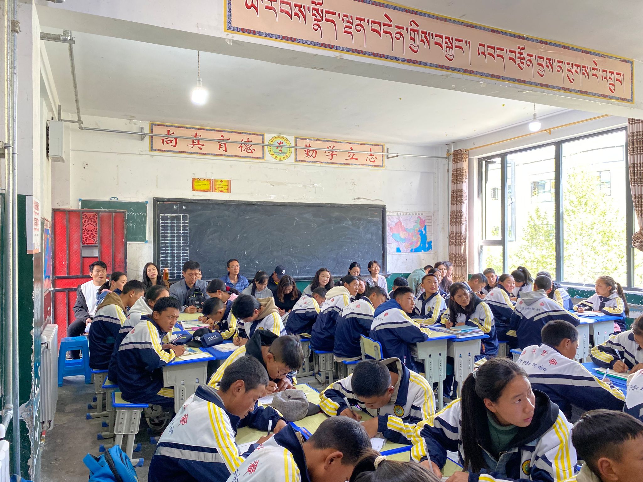 揭牌仪式后,孙列为左贡县中学赠送了汉字书法教材和天津大学校史文化书籍,并为师生们作了“汉字书法的书写方式与价值”的文化艺术讲座。岳静等深入到课堂听课,与师生交流,了解学校的通用语言文字教学情况。