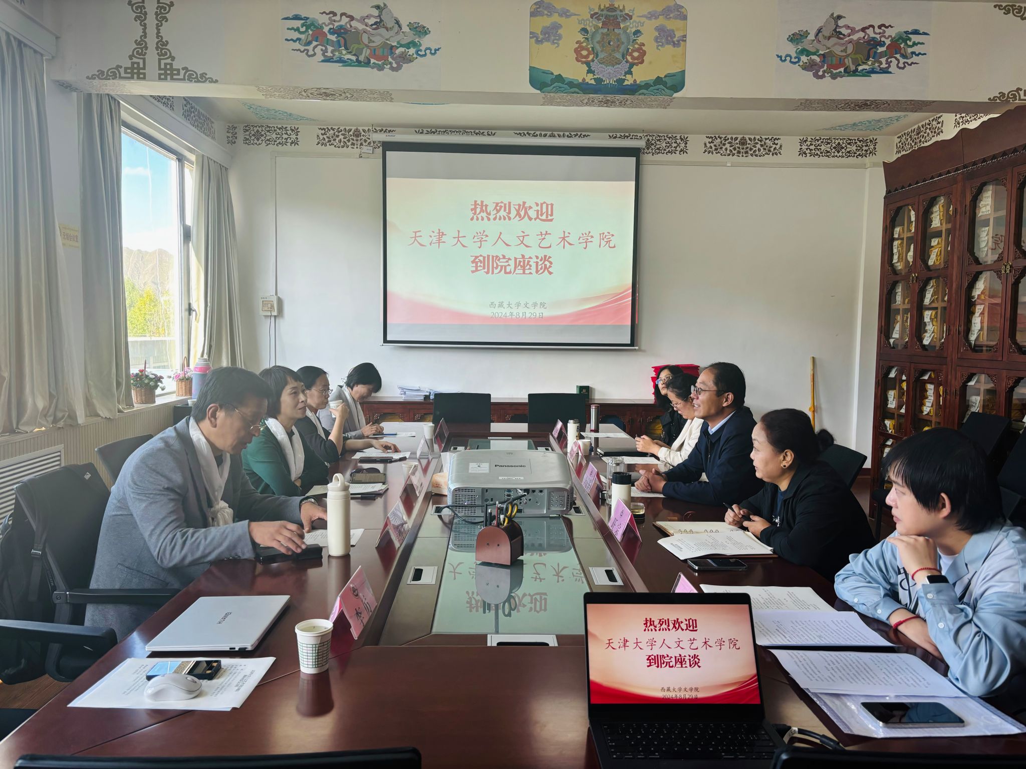 28日,吕静一行来到西藏职业技术学院调研交流,西藏职业技术学院党委委员、副院长徐斌,基础教育部主任群培次仁,语文组教师代表、非遗项目工作人员、团委工作人员及天津大学人文艺术学院同等学力硕士生参加座谈。