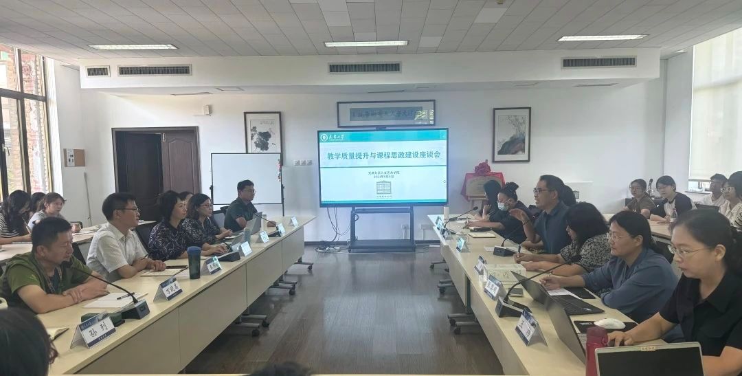 在讨论交流环节,师生们围绕如何提高教学质量,如何在专业课程中自然融入思政元素进行了互动交流。教师们分享了在提升课堂吸引力方面的实践经验,建议加强学生学习能力、实践能力和创新能力的培养,通过案例分析、价值引导等方式,潜移默化地培养学生的家国情怀和社会责任感,体现出人文艺术学院的“文学+中国之治”理念,培养具有文化理想和家国情怀的卓越人才。
