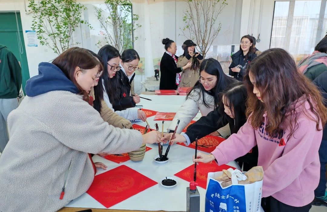 在创作体验环节,师生们挥毫泼墨,共同书写“福”字,绘制充满年味的艺术作品。无论是书法新手还是资深爱好者,都全神贯注地体验中国书法艺术的魅力。红纸墨香交织,现场年味十足,师生们用一笔一画书写新春的美好祝愿,并将自己创作的作品带回家,为春节增添喜庆与吉祥。
