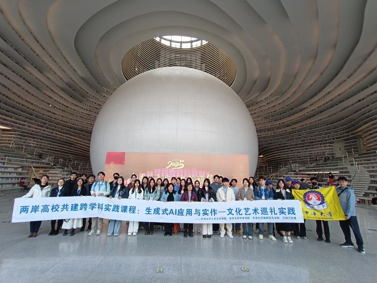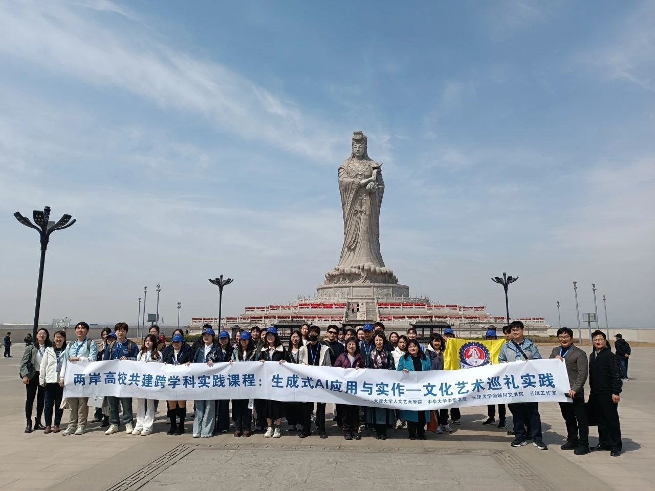 4月3日,天津大学与台湾中华大学共建跨学科实践课程“生成式AI应用与实作——文化艺术巡礼实践”开训典礼,在天津大学两岸交流研究基地滨海妈祖文化园举办。