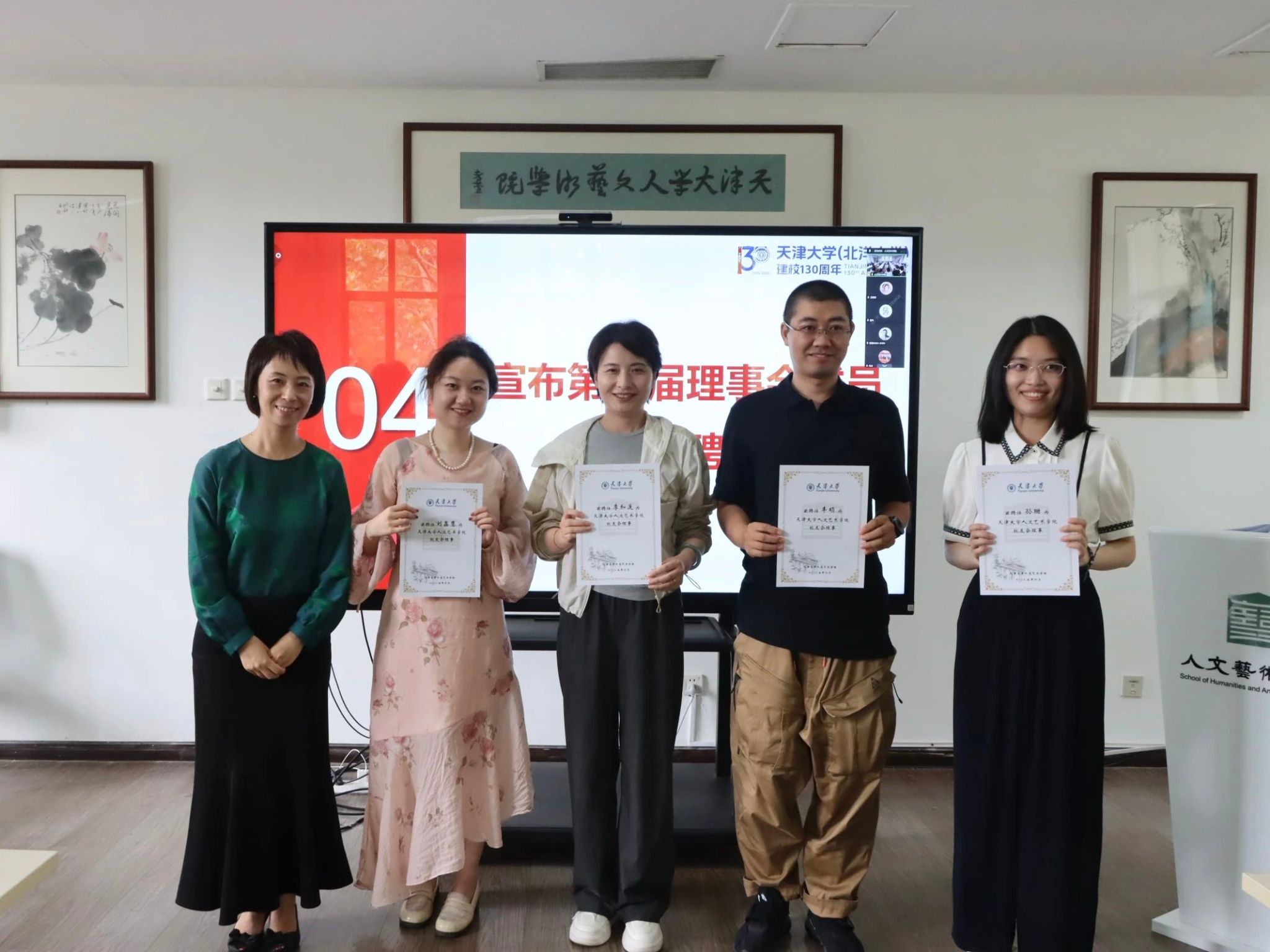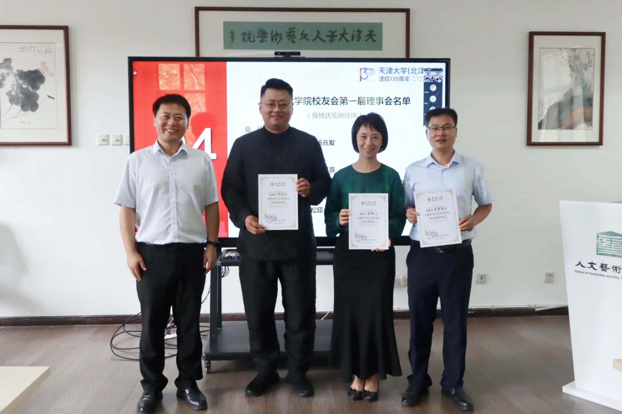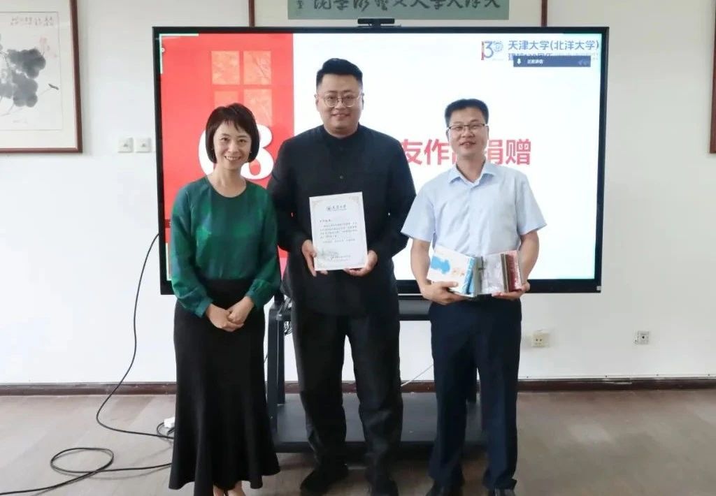 大会听取了校友会筹备情况汇报,审议通过了《天津大学人文艺术学院校友会章程》,宣布了第一届理事会组织架构和人员组成,并为到会的理事颁发聘书。 为庆祝天津大学建校130周年和学院校友会成立,校友代表还捐赠了个人代表作品。中文系校友王同捐赠了其担任声音设计和解说指导的纪录片《超级工程》《如果国宝会说话》,中文系(辅修学位)校友郑博文捐赠了其历时七年完成的汉字专著《汉字重逢》,王学仲艺术研究所校友丰硕捐赠个人国画作品《双清图》。作品不仅展示了校友们的才华和成就,也成为学院文化传承的珍贵见证。
