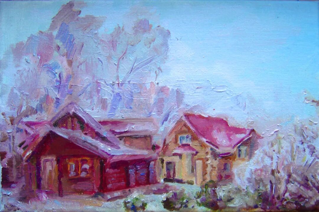 《圣彼得堡的郊外》是一幅带有浓郁个人情感与艺术探索意味的油画作品。我曾在俄罗斯留学,在假期中走访圣彼得堡郊外的乡间,随手捕捉木屋与自然景致的宁静风貌。作品采用印象主义的绘画语言,色彩绚丽而富于变化,笔触鲜明而自由,既保留了写生的即时感,也寄托了我当时的心境与对季节的感受。这幅作品不仅是一次艺术旅途的记录,也是一段中俄文化交融的见证。以真切的情感描绘俄罗斯的自然风光,将个人的艺术体验与跨国的文化记忆结合在一起。郊外的宁静景致与斑斓色彩,正寓意着和平的可贵与留学生活的温情。