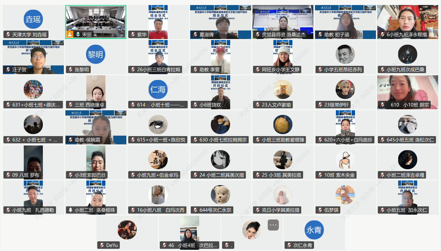 吕静发表致辞。她首先代表国家语言文字推广基地(天津大学)向顺利完成学业的全体学员表示热烈祝贺,向贡觉县教育局的密切协作、授课教师与志愿者的辛勤付出致以诚挚感谢。并指出,语言文字是文化的载体、民族精神的传承纽带,推广普及国家通用语言文字,对于铸牢中华民族共同体意识、促进各民族交流交往交融具有不可估量的价值。本次培训通过云上教学模式,充分调动了各方积极性,圆满实现了既定目标,是校地协同推进语言文字工作的成功实践。未来,国家语言文字推广基地(天津大学)将继续探索完善线上培训模式,为更多教师提供便捷高效的学习途径。