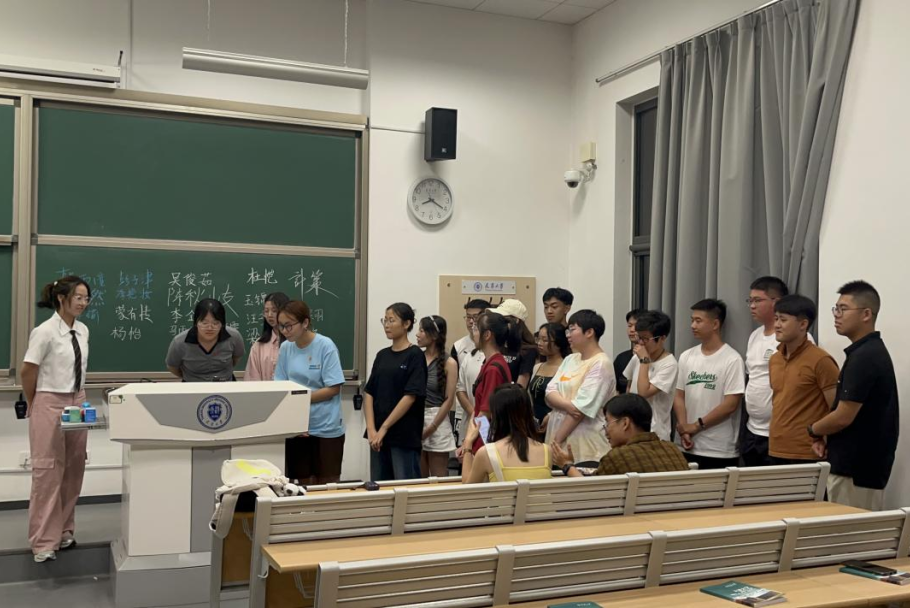 三个班级的新生在迎新小班的带领下各自开展了班级的见面会。每个同学上台依次做自我介绍,大家妙趣横生的发言使得见面会的气氛活跃了起来,一张张青春洋溢的面孔背后,是同学们对班集体建设的热情。同学们在辅导员和迎新骨干的带领下学唱天津大学校歌。