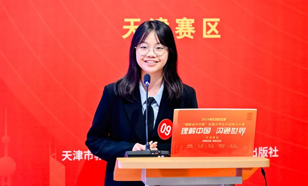 在赛程中,叶欢慧以生动的语言、真挚的情感,通过对“中国龙”形象的深刻解读,展现了对中华文化的热爱。她在定题演讲、即兴演讲、即兴作答等各环节,均表现了出色的语言运用和应变能力,历经校赛、市复赛与市决赛的层层筛选,在众多佼佼者中脱颖而出,获得天津赛区特等奖的好成绩。
