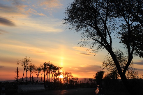 不知从哪一年起,呼和浩特的风沙渐渐小了,街头的树种慢慢多了。呼和浩特的秋,也渐渐有了些意思。有一年初秋刚好闲来时,妈妈驱车带着我从通道北街走过,看见一条主街道岔出一条新建的马路。道路两排巨人般直入云天的高压线走廊,道路中间的绿化带中,低矮的灌木一簇簇已经开始变的猩红,灌木丛中高大的杨树树叶层次分明:绿色的叶子被秋风打的透了明儿,黄色的叶子在阳光下闪闪发光,还有些黄绿参半的叶子中间过渡着。一阵风吹过,叶子沙沙作响,在阳光中闪烁。车行渐深,转过弯来,几株杏树突现路旁:枝丫极尽弯曲之能事,树干透着古铜色的金属光泽,叶子红的绚烂,绿的璀璨,黄的夺目。巨大的树冠就这样姹紫嫣红着,竟然比夏天时更热闹。渐渐地,路旁杏树开始多了起来,一丛丛,一株株,在果园中拥挤着热闹着,惊艳着我们。转过大路,进了乌素图村庄,家家门前院内都有树,路边铺满了厚厚的金黄色。偶尔能从虚掩的院门看见院内晒的玉米,也有不甘寂寞的枝叶从院里探出到路旁,招摇着它的美丽。转过两片巨大的果园,不知不觉间我们已经到了半山坡,回过头来,整个城市跃然眼前。突然觉得,好像动画片中的那座天空之城——神秘,繁华,美丽。这呼和浩特的秋,在不知不觉中,竟然悄悄地如此动人!