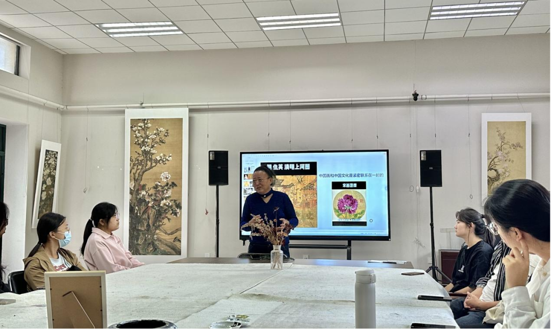 10月15日,美育导师曹铁娃带领2023级硕士生走进经典艺术,品味中国画之美。曹铁娃以千里江山图为例,层层递进,与同学们一起打开了“精致、唯美、细腻”的中国画世界的大门。曹铁娃介绍,中国画自始与中国文化紧密相联,是“中庸之道,和谐之美”的表现,中国式审美,美在意境。她从矿物颜料、传统绘画的当代表达、中国画的历史发展脉络等多个层面展开,细致地向同学们讲解了中国山水画。曹铁娃解释到,千里江山图之所以能够呈现出“咫尺有千里之趣”的效果,是因为采取了移步换景的手法;之所以能够突出山川的画面主角,则是因其巧妙地采用了三远结合法。曹铁娃在课堂上播放了只此青绿视频片段,与同学们共同领略山水画之变。此外,她还向同学们介绍了美育传统活动,邀请同学们参与年画拓印、北洋送福等活动。