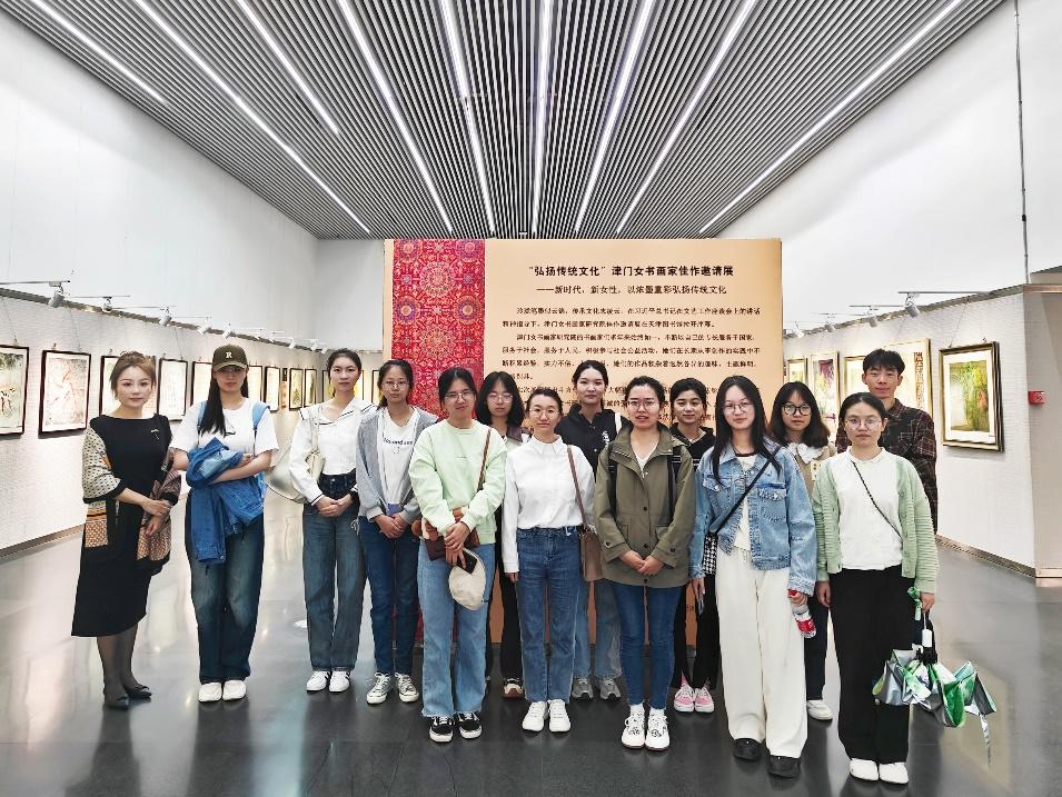 10月21日,孙锐带领同学们走进天津图书馆、美术馆,参观“弘扬传统文化—津门女书画家佳作邀请展”“志道·游艺-中国画家六人展”“春游——李叔同歌词书法邀请展”等展出。让同学们在艺术作品的熏陶下,感受中国文人的价值追求、文化修养和新时代艺术工作者为时代画像的使命担当,实现跨越时空的对话和交流,增强文化自信。