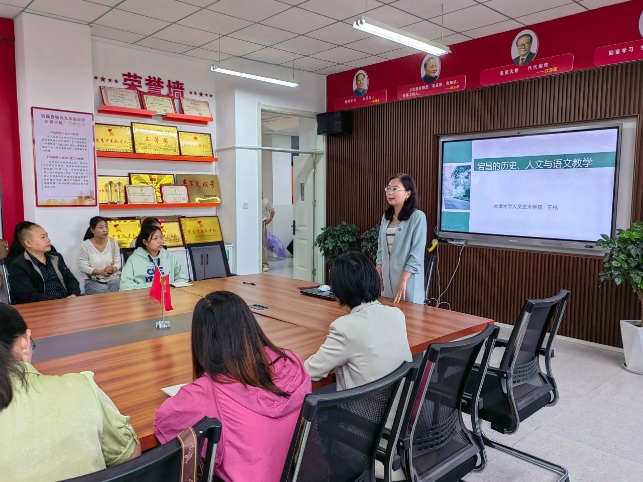 为提升宕昌一线教师的中国传统文化素养,加强中华优秀传统文化在教育、文旅及文化建设中的运用,国家语言文字推广基地(天津大学)、天津大学人文艺术学院联合远程与继续教育学院开展“优秀传统文化教育帮扶”项目。作为项目活动之一,我院副教授王祎带来了宕昌区域优秀传统文化与语文教学的专题培训。