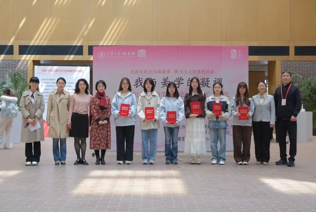 春色盈檐,海棠灼灼。2026年4月11日上午10时,天津大学北洋园校区郑东图书馆一层展厅内,“自我与美学的凝视——天津大学人文艺术学院美学课程作业展”正式拉开帷幕。本次展览由天津大学人文艺术学院与天津大学图书馆联合主办,是天津大学“2026海棠季·观·天大之韵”系列活动的重要组成部分,也是图书馆“知学展览”系列第123期。人文艺术学院党委书记吕静,图书馆副馆长孟少卿,文化建设中心主任赵红,人文艺术学院院长助理、中文系主任张黎明,中文系副主任史静等出席开幕式,师生代表与校内外观众共同参与了这场春日里的美学聚会。