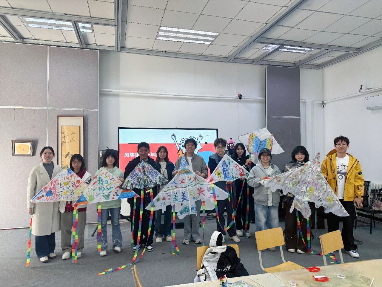 一只只色彩斑斓、独具特色的风筝顺利完成,同学们手持作品合影留念,定格春日里的劳动瞬间与创作喜悦。活动最后,同学们自觉整理物料、清理场地,以实际行动践行劳动精神与文明素养。